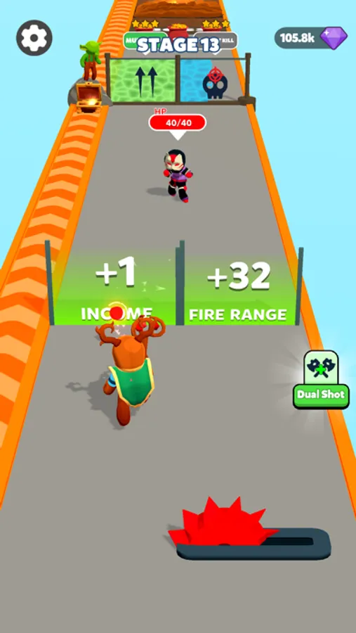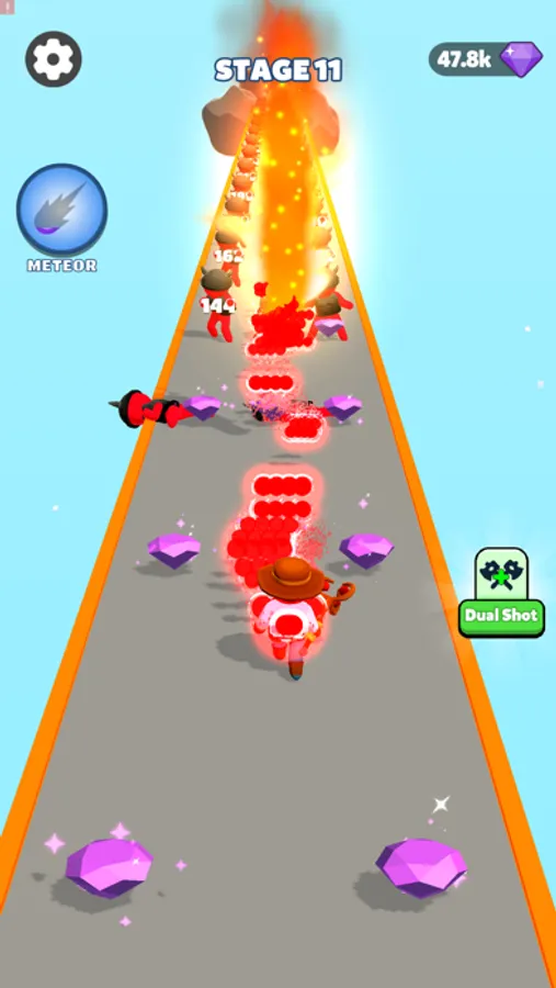 Build your hero powers, choose weapon, choose skills and destroy enemies.