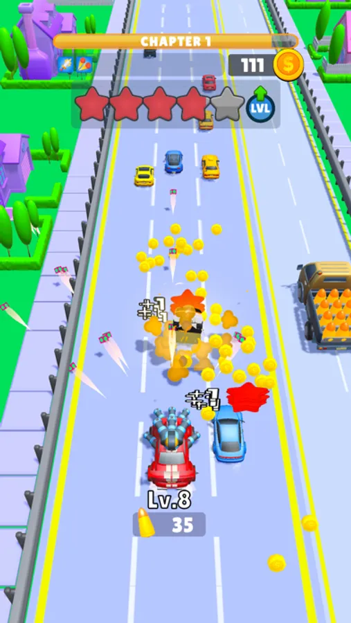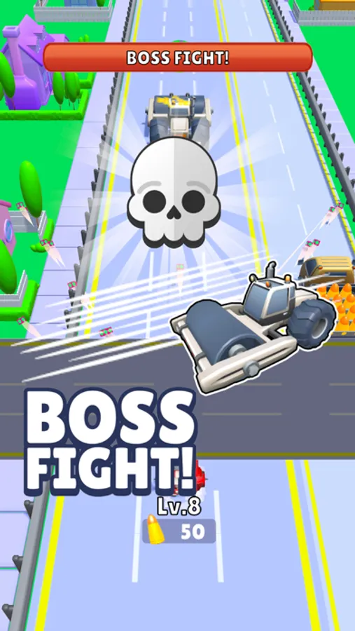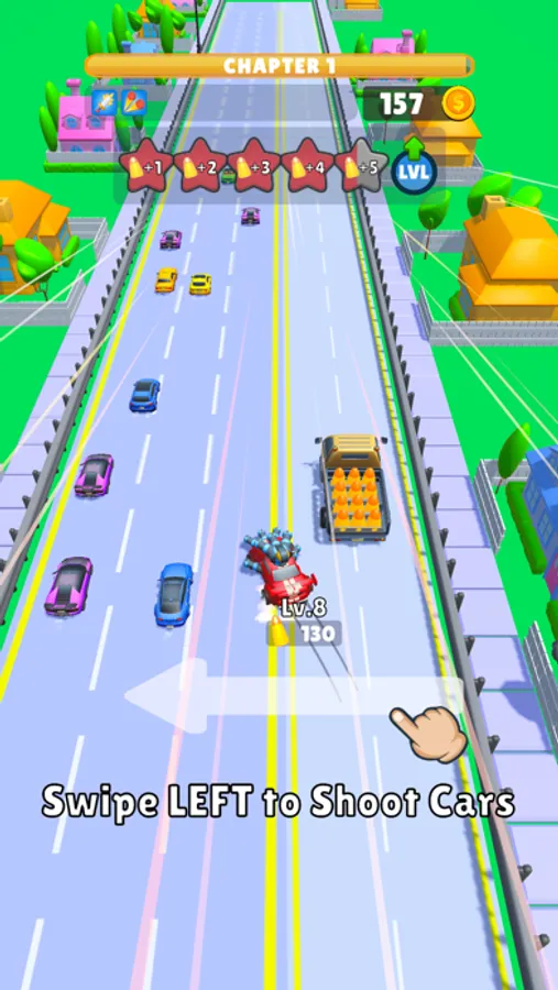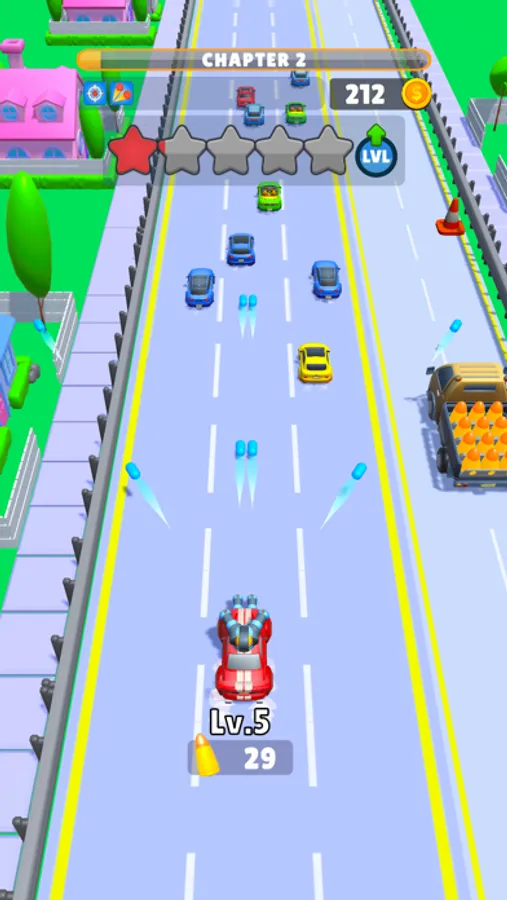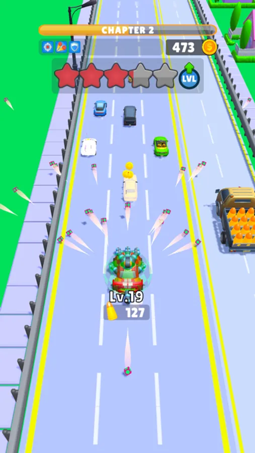 Experience the thrill of this fast-paced, action-packed game where you control your car with a joystick and follow the star bar. Collect ammo from the truck on the right, switch to the left lane to pick up perks and power-ups, and become unstoppable in your quest to defeat the bosses. With a focus on endless power-ups, this game will keep you hooked for hours. But be careful, other cars will try to knock you off the road! Get ready to dodge, weave, and upgrade your car to become the ultimate driving machine. With stunning graphics and addictive gameplay, this game will test your reflexes and driving skills to the limit. Play now and dominate the road!!