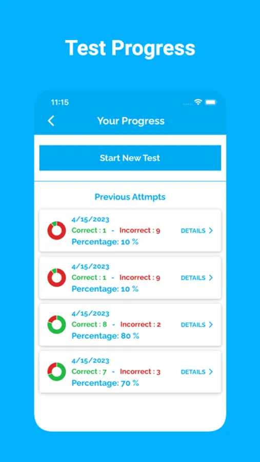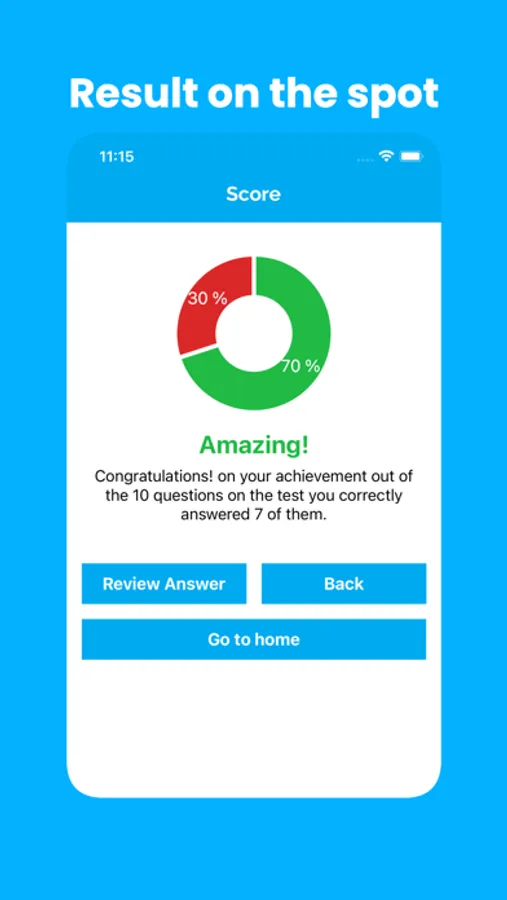 - Review test questions with answers and filter about right and wrong answers