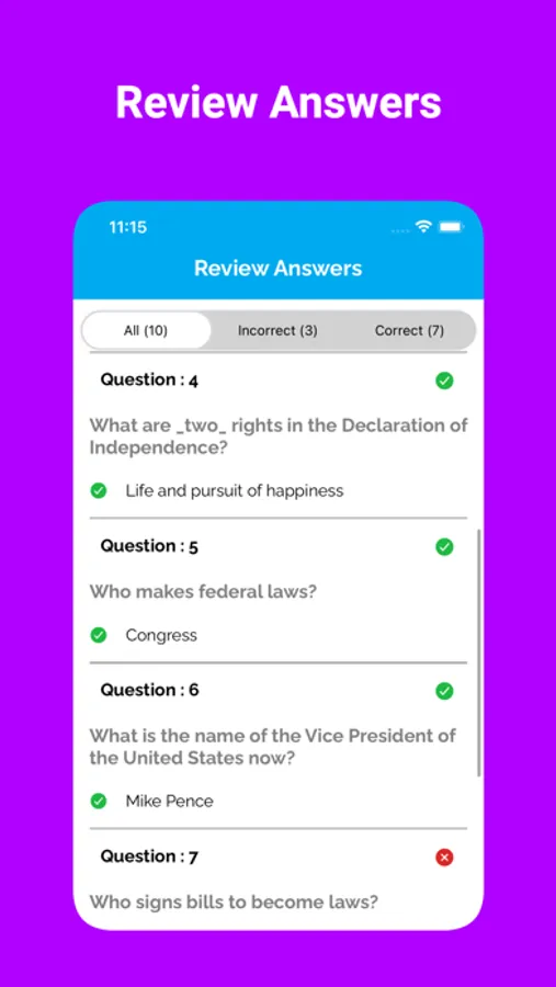 This app is made to assist you in studying effectively and passing the US Citizenship Test. You will learn about civics of US that includes History, government, System of Government, Rights and Responsibilities, Colonial Period and Independence, Geography, Holidays and symbols.