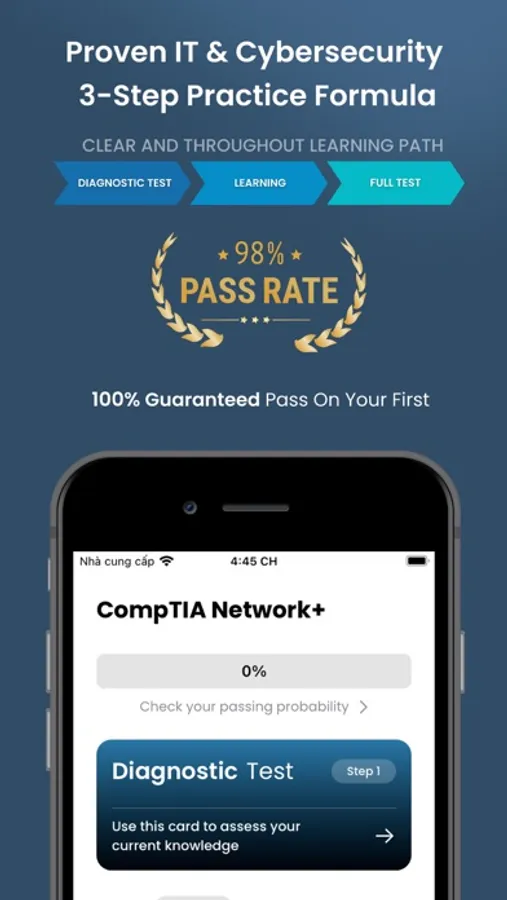 This IT app offers a personalized learning path that starts with a diagnostic test to identify your strengths and weaknesses. Based on the results, you can focus on improving your weaknesses or study any specific topic you want. Once you feel confident, you can move on to several full tests to assess your readiness for the actual exam.