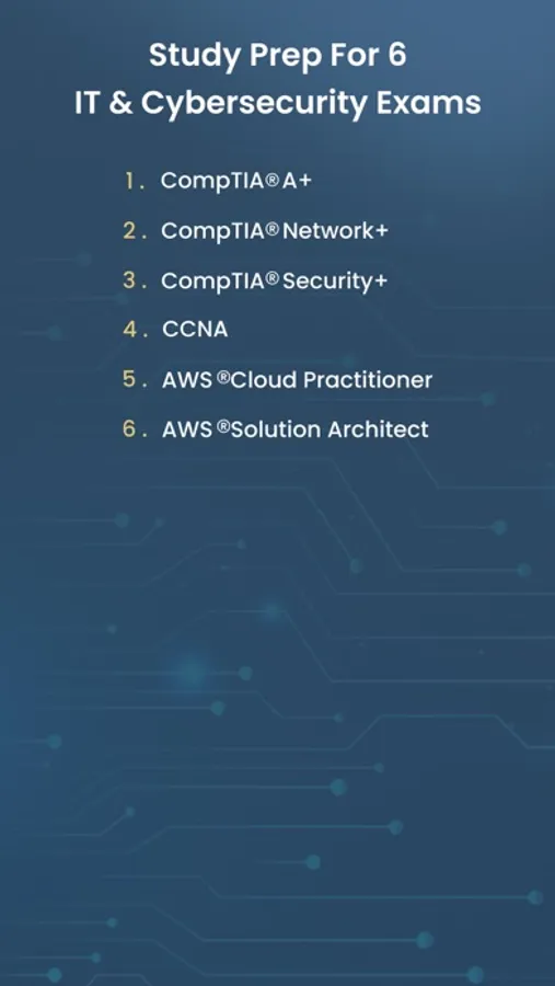 Our IT practice exams app is a comprehensive tool designed to help you prepare for various IT certification exams. With dozens of free practice exams, including CompTIA® A+, CompTIA® Network+, CompTIA® Security+, CCNA, AWS® Cloud Practitioner ( CLF-C01 ), AWS® Solution Architect ... you can choose the exam that suits your needs and practice to your heart's content.