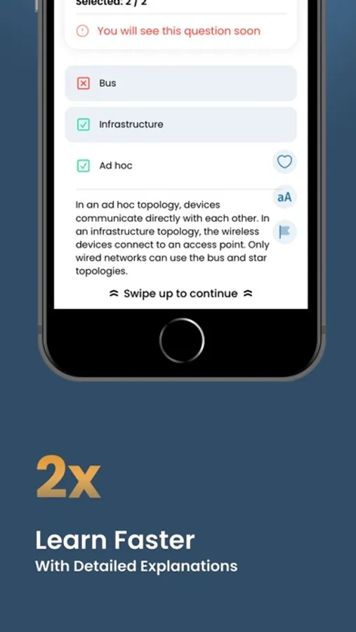 With our app's gamification feature, hundreds of questions are divided into small parts, making it easy to practice round by round, just like playing games. You can also test your knowledge by specific knowledge areas by selecting the topic you want to study.