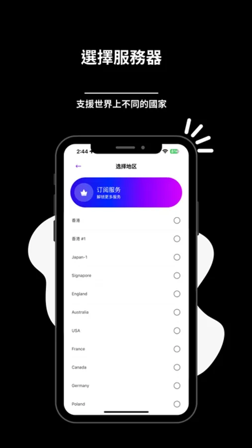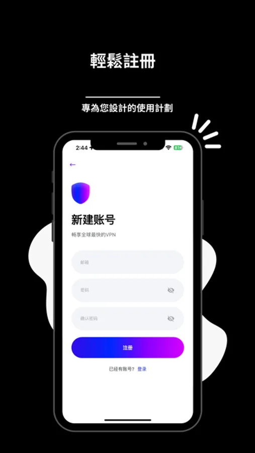 我們提供了不用登錄的方法即可享受連接VPN及其功能,您只需要安裝及打開應用,使可以連接,功能包括:去除手機及網頁廣告,威脅防護等等。