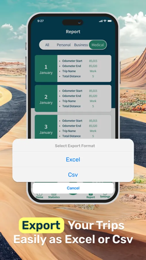 - Record the start and end odometer readings for each trip, and give each trip a custom name for easy reference.