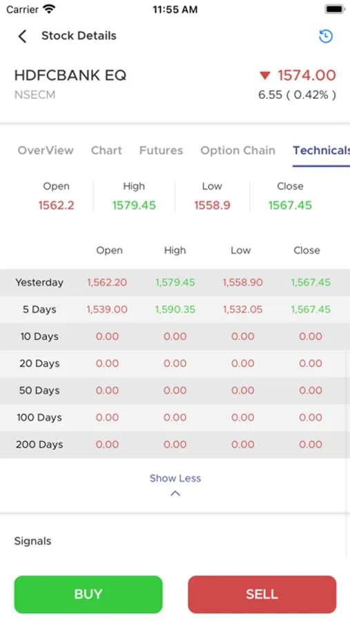 • View OHCL (Open High Close Low) data in Technical Sections