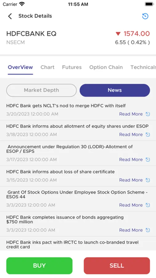 • Buy Sell directly from Option Chain.