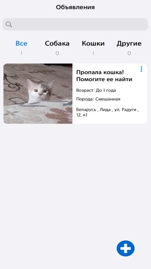 - Создавать посты о поиске или находке домашних питомцев