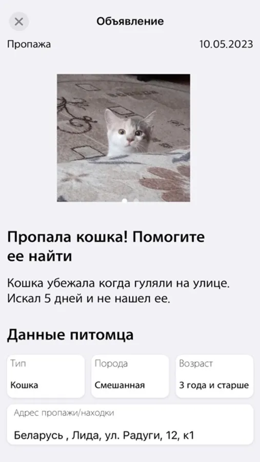 - Помогать другим пользователям, которые ищут своих потерянных питомцев
