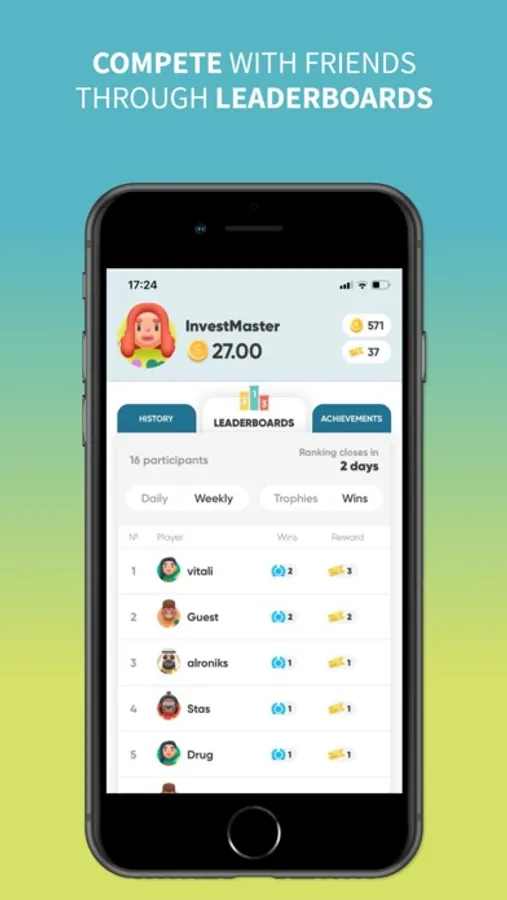 Invest Master is more than just a game, it's your chance to win real cash while having fun! Whether you’re new to the markets or an experienced trader, you will enjoy our stock and crypto duels and tournaments.