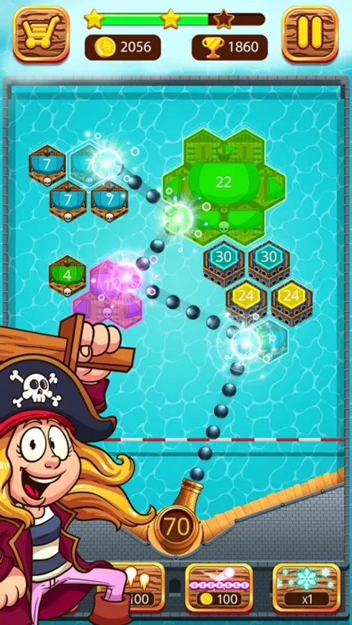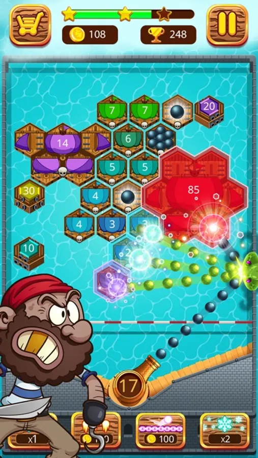The gameplay in Pirate's cannon: a mega battle is similar to the classic bubble shooter game, but with a pirate twist. You'll take out as many enemy ships as possible. With each level, the difficulty ramps up, requiring quick reflexes and strategic planning to stay ahead of your foes.