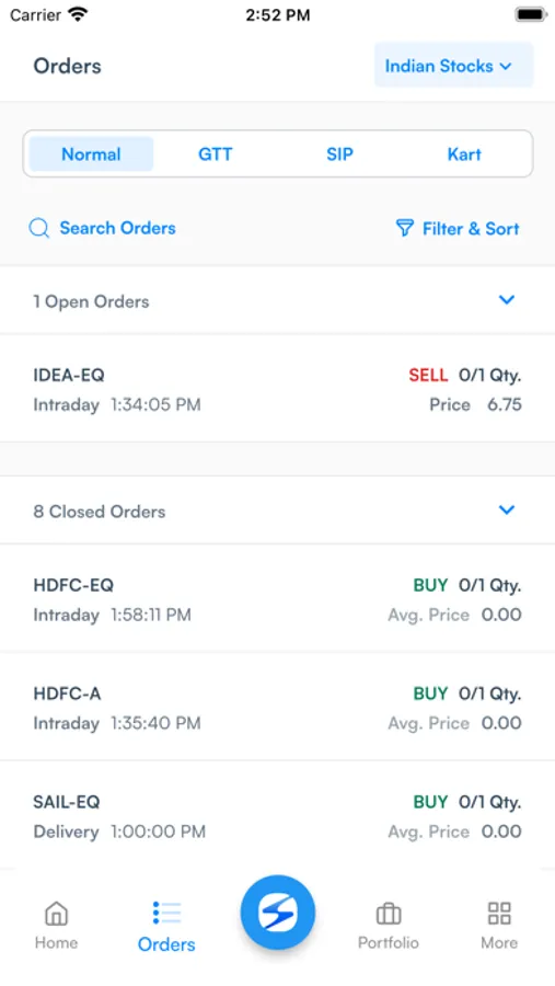 → Start an SIP on individual stocks or an entire 'Kart'.