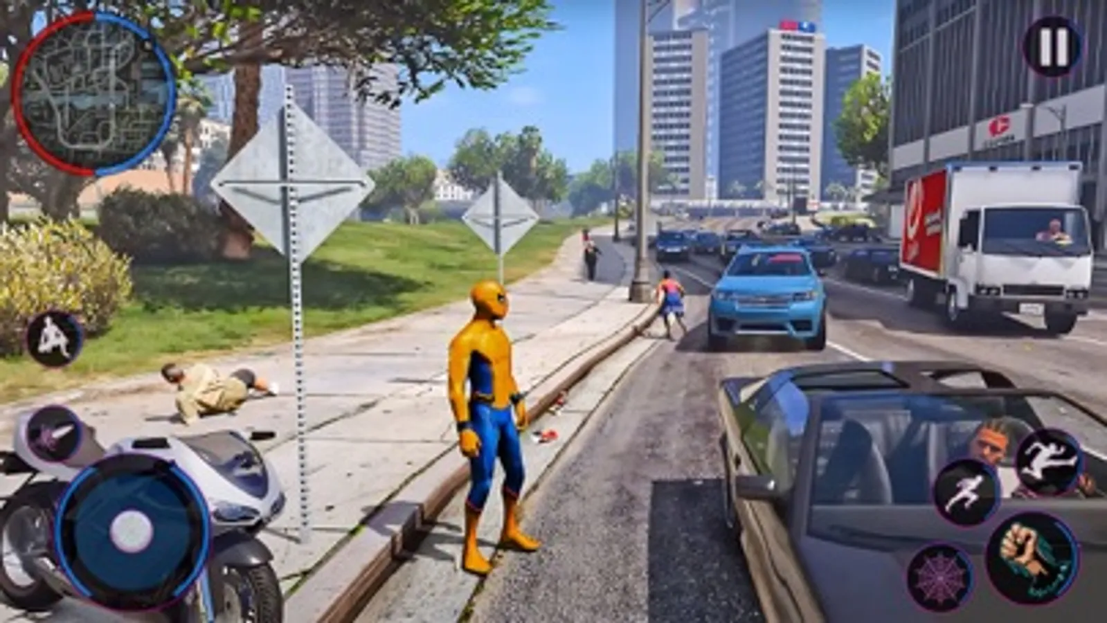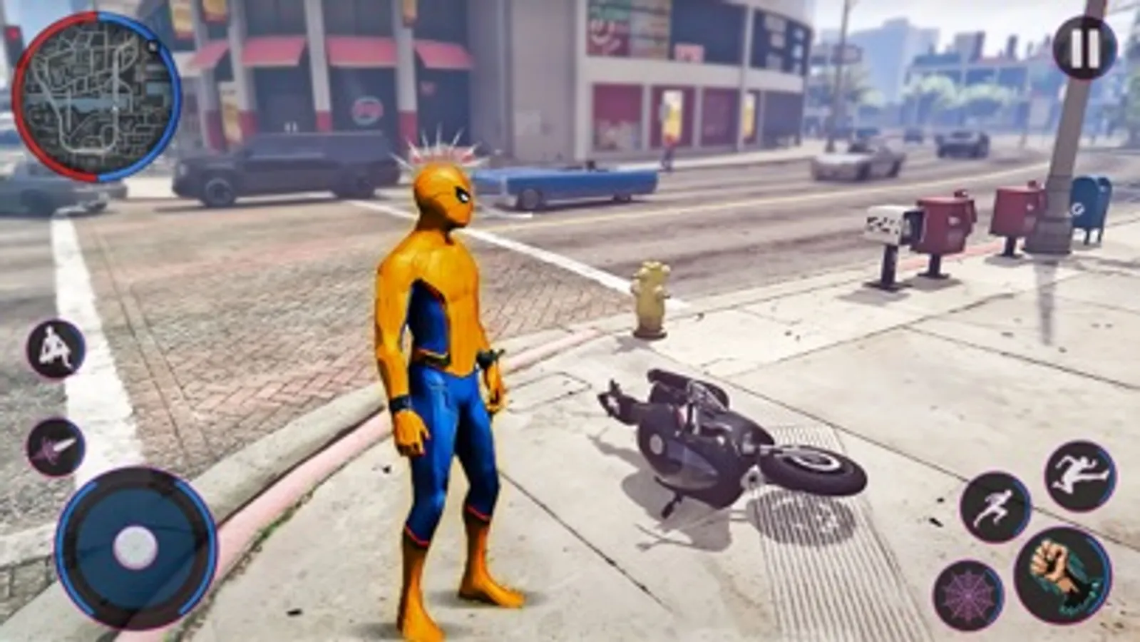 Be a super rope hero spider in crime city strange game. Bad gangsters have entered the vice city. Destroying the peace of city with shooting guns. Use super powers of flying, laser beam, punch and kill all bad crime gangsters in the city.