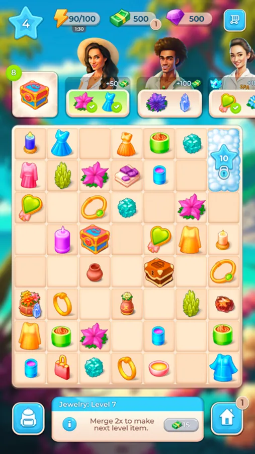 Relaxing gameplay. Just merge two items and then build the Spa Resort. It couldn’t be any more simple