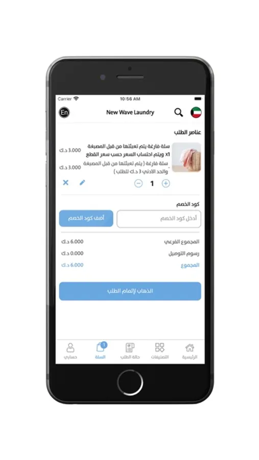 In the New Wave Laundry application, you can choose what you want from the services you need. You can easily order from the application after entering it, then click on the category you want, and then add what suits you to your shopping cart. After that, complete the order process by choosing the method of collecting your order and the payment method that suits you, and add all other required information.