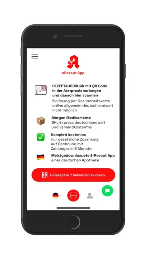 With the free e-prescription app, ordering medication is easier than ever: connect your health insurance card or scan your prescription code and receive your medication anywhere in Germany by DHL - free of shipping costs and within 24 to 48 hours*.