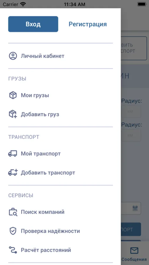 Публикуйте заявки транспорта и грузов