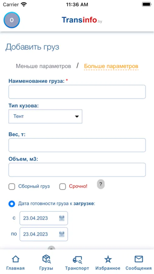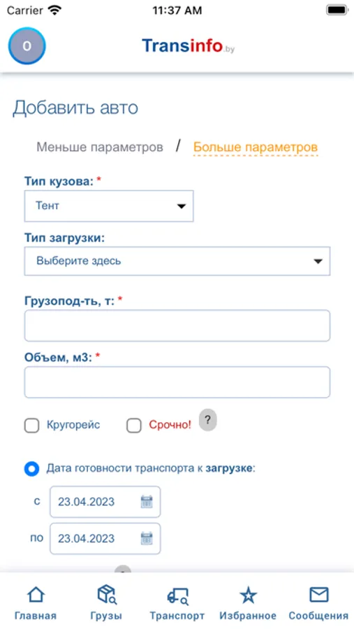 Задайте нужные параметры для груза или транспорта и оставьте приложение работать в фоновом режиме. Каждый раз, когда подходящая заявка будет появляться на Transinfo, вы будете слышать звуковой сигнал.