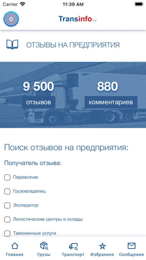 Официальное приложение портала грузоперевозок Transinfo.