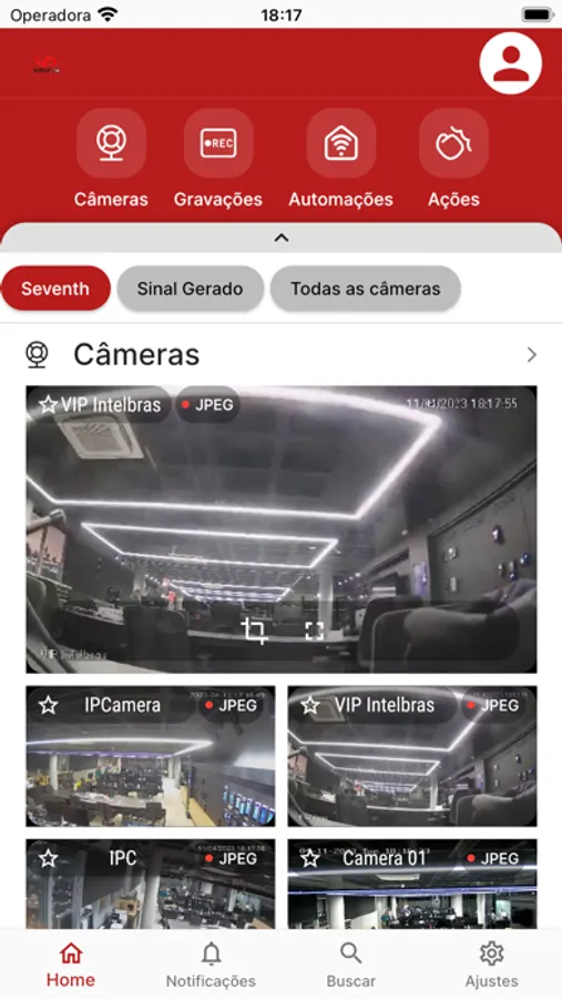 • Visualização de imagens em tempo real de qualquer câmera conectada aos servidores compatíveis;