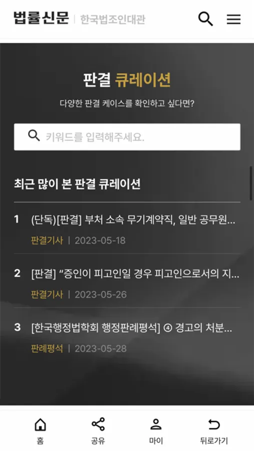 - 판결 큐레이션: 핵심 판결 정보를 신속하게 열람하고 활용 가능