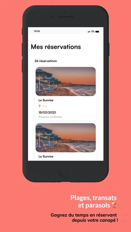 Grâce à Sunbedz, tu peux réserver tes transats plusieurs semaines à l'avance et ainsi organiser tranquillement tes journées à la plage depuis ton canapé. Le vaste choix que te propose l'application te permettra de découvrir la majorité des Beach Clubs de ta destination.