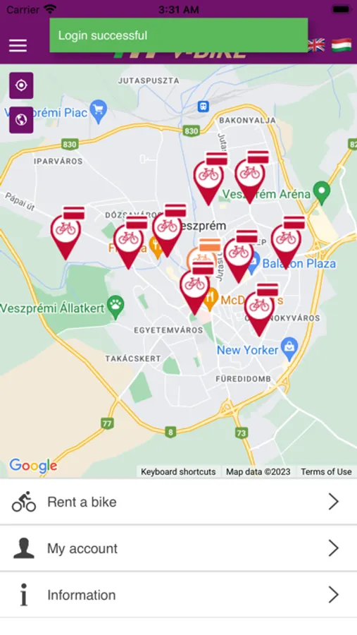 Az V-Bike kerékpárkölcsönző rendszer egyedi, gyors és környezetbarát közlekedési mód. Az alkalmazás egyszerűsíti a kerékpárkölcsönzést mind az alkalmi, mind pedig a rendszeres kerékpározók és turisták számára. Az alkalmazásba történő bejelentkezés felhasználóbarát élményt nyújt, amelynek köszönhetően a felhasználó betekintést nyer a bérlet-és jegyvásárlási lehetőségekbe.