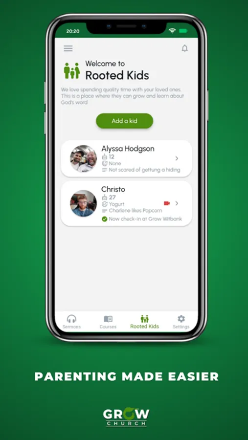 Welcome to Grow Church – the all-in-one app for busy parents who want to stay connected with their children's church experience. With Grow Church, you can check your kids in and out of church activities with just a few taps on your phone. Plus, our app provides live video footage of the children's church so you can see exactly what's happening while you're away.