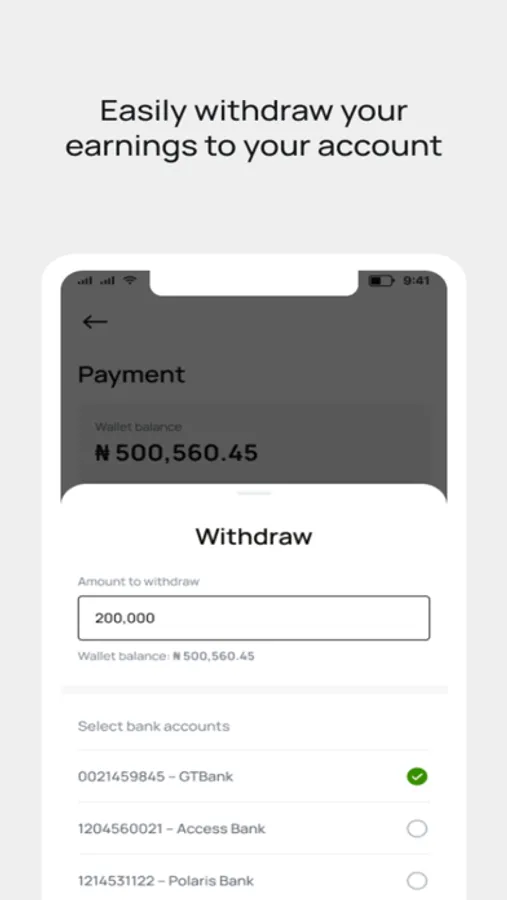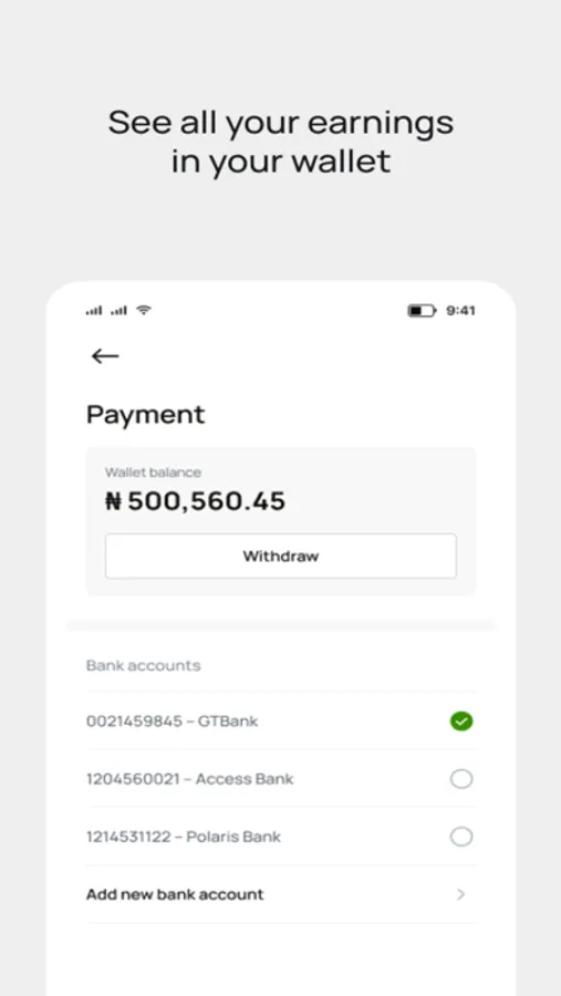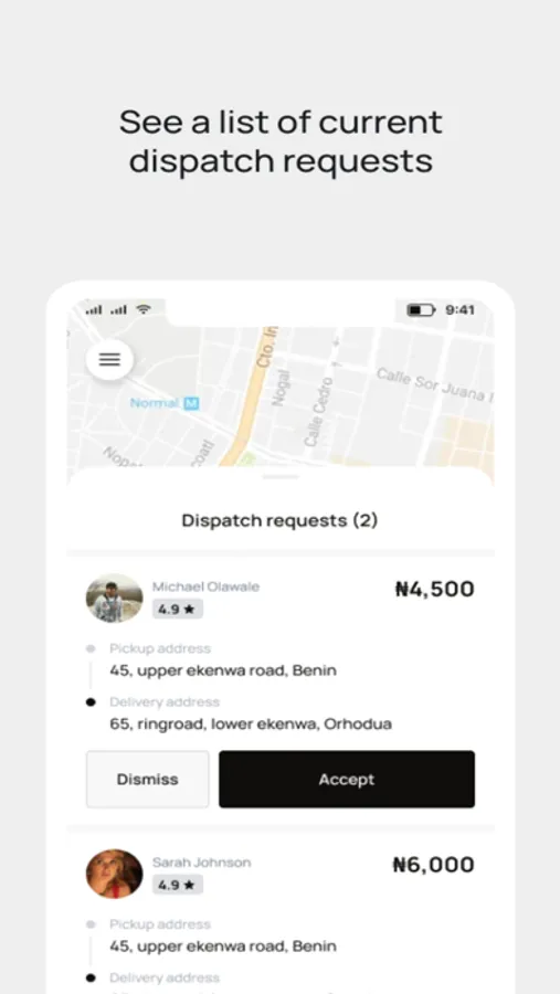 Riders are required to download the Kwik Pik rider app so that they can seamlessly receive, accept, execute and deliver dispatch requests from Kwik Pik users. The app let's riders to collect payment for deliveries, and easily withdraw it into their bank accounts on a weekly basis.