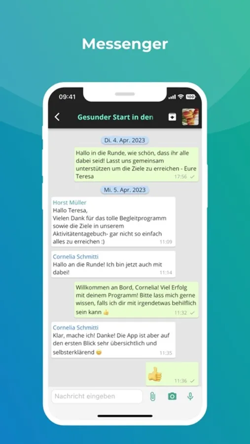 • Einfacher Austausch mit Ihrem Therapeuten oder anderen Therapieteilnehmenden via Messenger