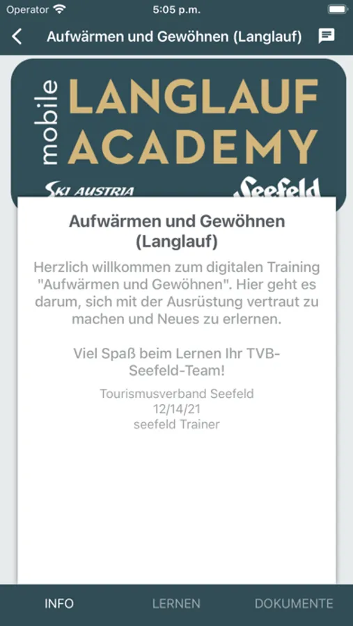 Läuft bei dir! Mit dem digitalen Trainer der Olympiaregion Seefeld hast du deinen persönlichen Langlauf-Coach immer und überall in der Tasche. Ab auf die Loipe und los geht’s: Die kurzen Video-Anleitungen wurden gemeinsam mit dem ÖSV entwickelt und werden dir von echten Profis direkt auf der Loipe erklärt. Mit den besten Tipps und Tricks für die perfekte Lauftechnik aus allererster Hand. Egal ob Skating oder Klassisch – mit der Langlauf Academy Seefeld läufst du sicher in jeder Spur. Echt stilsicher unterwegs. Mit dem digitalen Langlauf-Trainer der Olympiaregion Seefeld läufst du stilsicher in jeder Spur! Ob klassisch oder Skating – die professionellen Video-Kurzanleitungen wurden gemeinsam mit dem ÖSV entwickelt und direkt auf den Loipen der Region aufgenommen. So bekommst du das geballte Know-How des österreichischen Langlauf-Lehrplans direkt auf dein Smartphone! Die Trainingsinhalte orientieren sich dabei an deiner ganz persönlichen Leistungsstufe und können jederzeit individuell konfiguriert werden. Lernen von den Besten – immer und überall. So ist dein persönlicher Langlauftrainer immer genau da wo du bist – auf den weitläufigen Loipen der Olympiaregion Seefeld oder einfach bei einer kurzen Pause im Büro. Neben maßgeschneiderten Instruktionen für Anfänger, Fortgeschrittene und Experten schult dich dein digitaler Langlauftrainer auch in Sachen Sicherheit und Materialkunde. So nimmst du deinen Erfolgsweg ganz einfach selbst in die Hand. Dabei wünschen wir dir ganz viel Freude - und bis bald auf der Loipe! Echte Vielfalt genießen. Das sonnenreiche Hochplateau der Olympiaregion Seefeld liegt auf schneesicheren 1.200 Metern über Innsbruck, zwischen Zugspitze, Wettersteingebirge und dem Naturpark Karwendel. Während der Wintermonate verwandelt sich die Region in ein vielfältiges Langlauf-Eldorado für ambitionierte Freizeit- und Profisportler. Dann verbinden über 245 Langlaufkilometer die fünf Ortschaften mit einem vielfältigen Loipennetz für alle Ansprüche: Weitläufige Panoramarunden, gemütliche Landschaftsläufe oder echte Herausforderungen – hier kennt die Vielfalt wirklich keine Grenzen. Und weil die Erholung danach genauso wichtig ist, bleibt nach ein bis zwei Stunden Lauf immer noch genug Zeit zum Genießen übrig. Bei ausgezeichneter Kulinarik, tiefenwirksamer Entspannung oder unzähligen Wintererlebnissen in der Region.