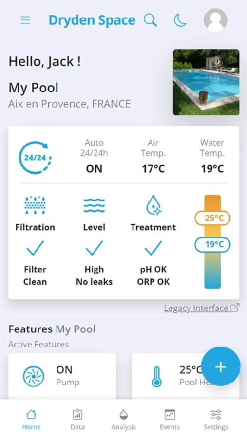 The Dryden Aqua SPACE app makes every pool installation remotely visible. Parameters can be adjusted, and many elements can be monitored and analysed.