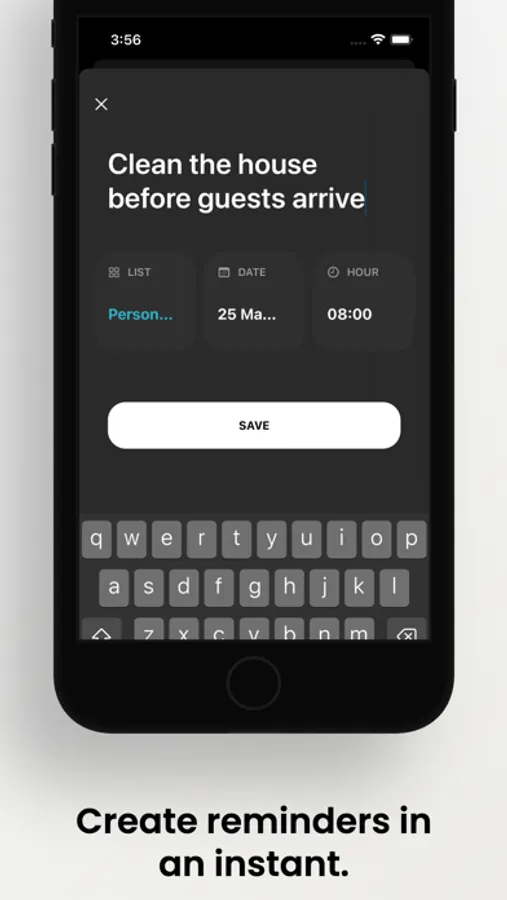 Discover a minimalist solution for optimal organization with our mobile application! Easily create personalized reminders to never forget your important tasks. Whether it's for appointments, deadlines, or special events, our application helps you stay perfectly organized.