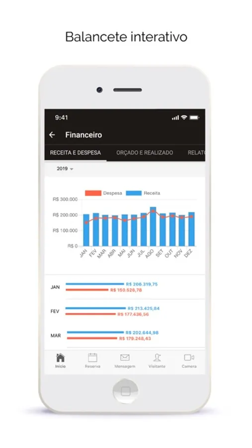 - comparativo de orçado versus realizado (gráficos e detalhamento)