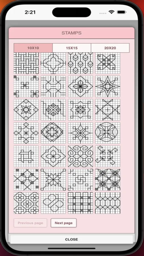 8. Stamps button - add little stamps (little designs) to add to your pattern