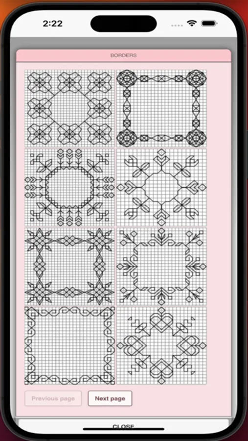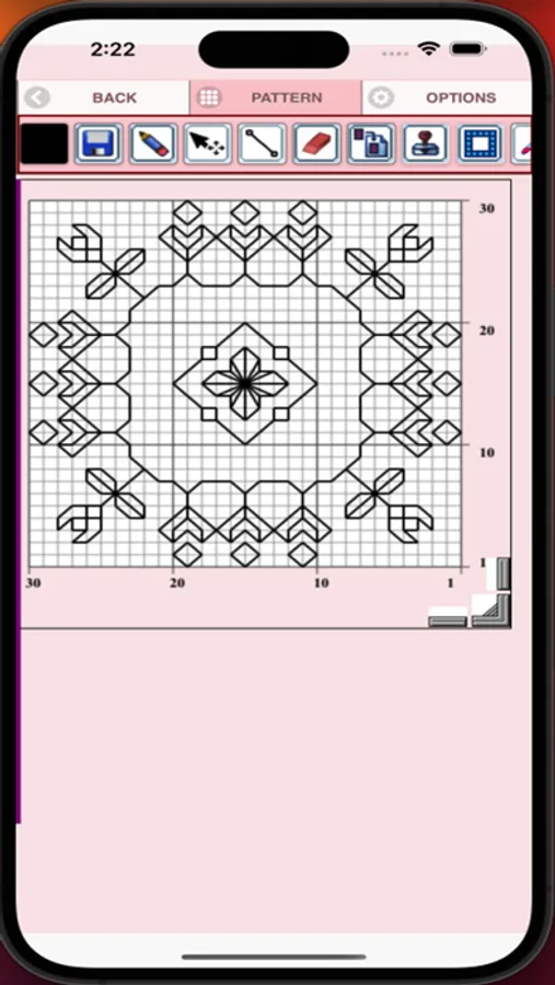 22. Share button - share a picture of your Blackwork pattern using email, text etc.