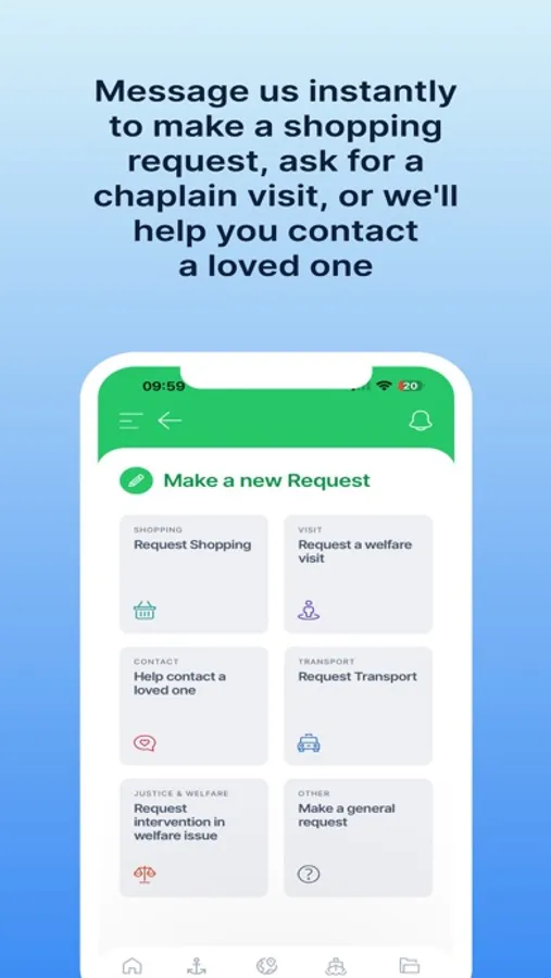 Message us instantly from the app to make a shopping request, ask for a chaplain visit, or we'll help you contact a loved one.