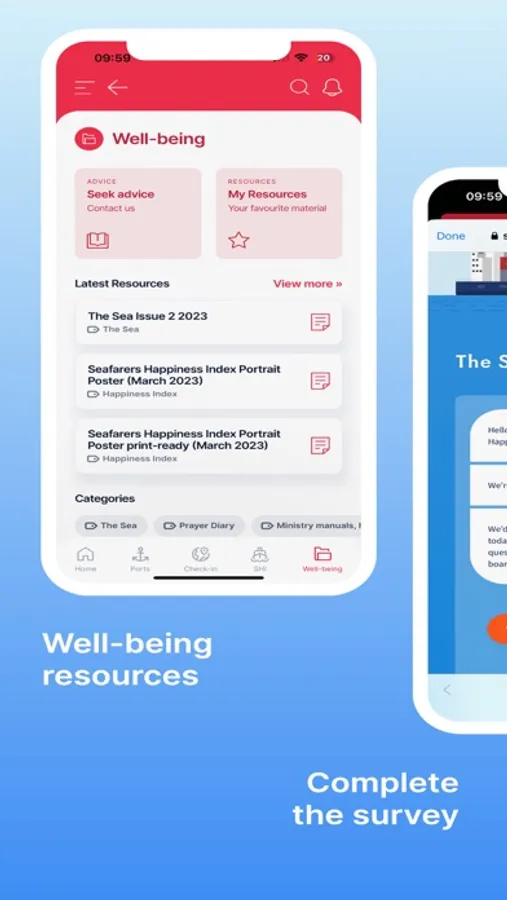 Packed with resources for those that need them, the wellbeing section allows seafarers to access these.