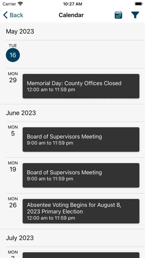 You can connect with your County Supervisor and find out about the latest news and events. You can also report a concern, find out election information and voting locations, file for permits, and look up land records.