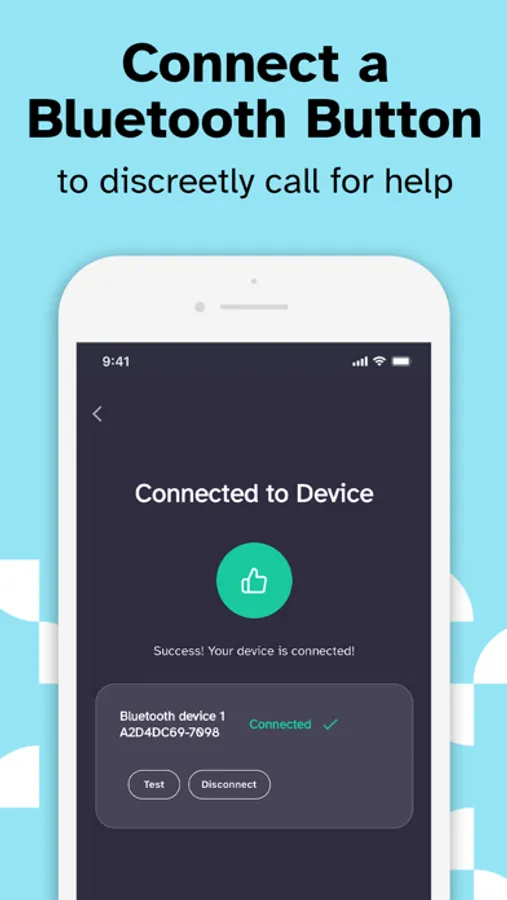 -Pair the Bluetooth button with your app to alert emergency services when you’re in danger