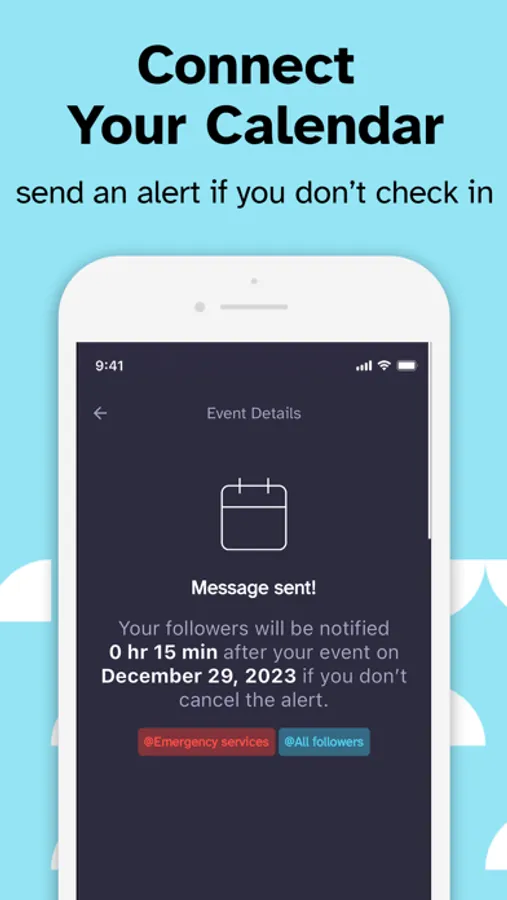- Followers will receive an alert to check up after your scheduled event if you don’t check in