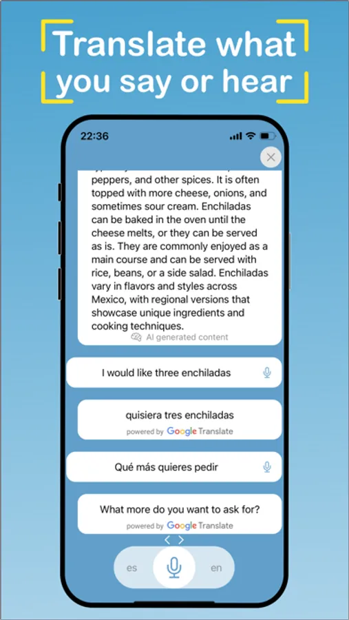 ExpLingo translates and explains foreign dishes, words, dialects and languages. ExpLingo continues where normal word-for-word translation stops. Fast and without time-consuming online research. Perfect for your vacation and all situations where your time is too precious to search the internet!