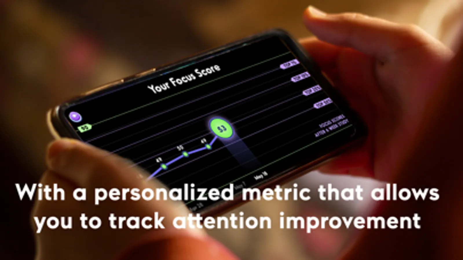 EndeavorOTC now includes the first of its kind attention metric, Focus Score. Focus Score allows you to track meaningful improvements in your focus. This personalized metric, and the predicted user outcomes from increasing this metric, have been validated against our adult clinical study data.