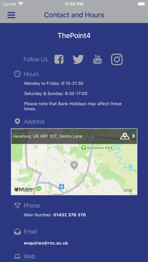This App is intended for users and visitors for thePoint4 Fitness Centre in Hereford, UK. This App allows both Members and Non Members to book onto any of our Exercise Classes, offer guidance towards setting up their own Membership online, notify you of updates and promotions for the centre, as well as provide various additional information about our services and staff.
