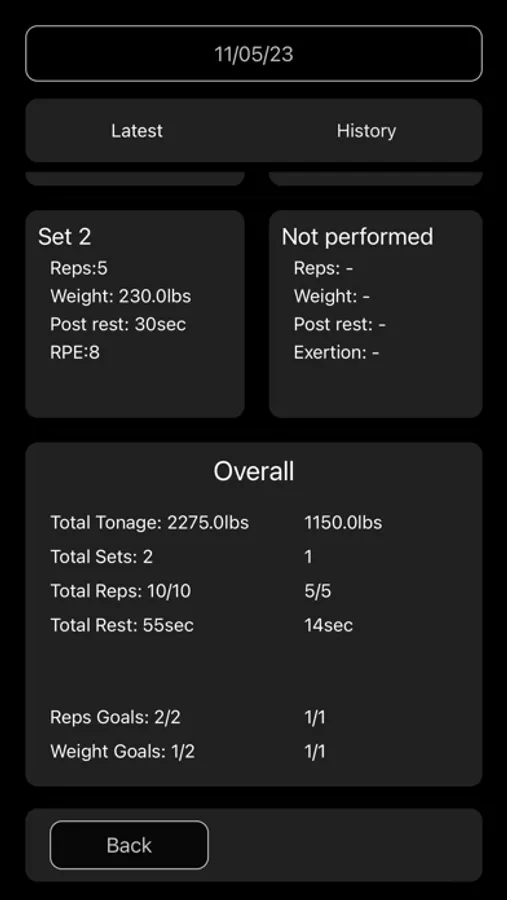 Iron Journal's tracking features allows you to monitor rest times, exertion (RPE, RIR), weight goals, and provides total tonnage reports as well, so you can see how you're progressing over time.