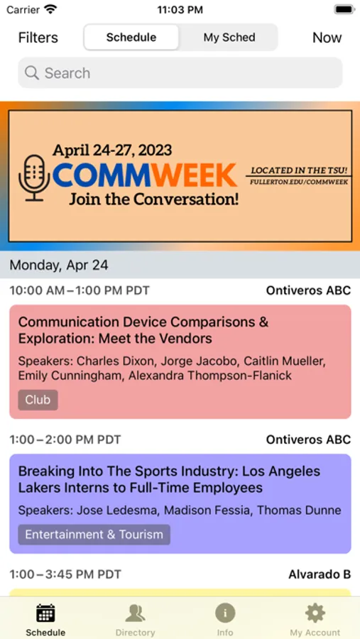 Conveniently browse the entire schedule for CSUF Comm Week 2023. Get the key information of your event without ever having to crack open an event guide.