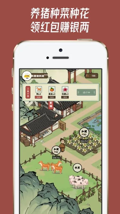 《猪猪田园世界》是一款农院风的种地app。只需要动动手指,你就可以在自己的小农院中种植作物、烹调美食,升级各种设施,收获银两,让悠闲的农院生活越来越好~
