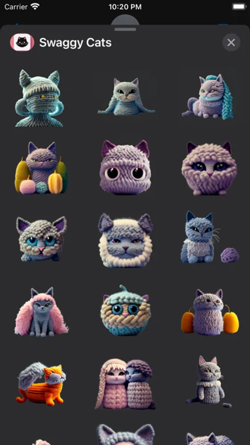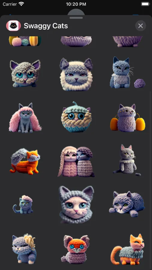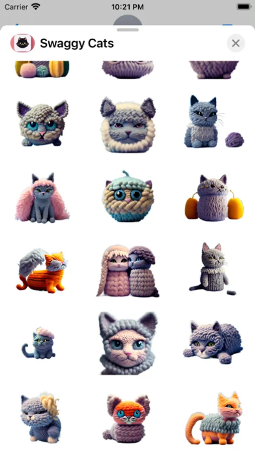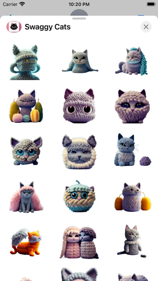 With Swaggy Cats, you can express yourself with a variety of cat stickers designed in a unique wool style. These cute and fluffy felines are perfect for adding a touch of warmth and charm to your messages.