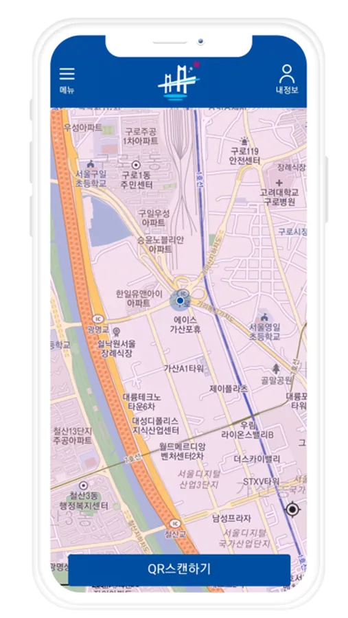 ②앱 화면 하단 “QR스캔하기” 버튼을 눌러 QR코드를 인식하면 잠금장치가 해제됩니다.