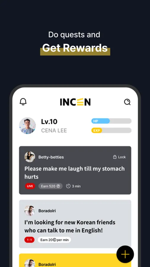 ● Users can accumulate experience points through quest activities, attendance check-ins, participation in event, and more, in order to level up.As the level increases, various benefits are granted.